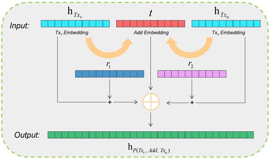 To better aggregate the characteristics of transaction entities and wallet addresses and fully reflect the characteristics of keeping Bitcoin transactions flowing, we built a heterogeneous Bitcoin transaction network with node attributes, as shown in Figure 1. We take the Bitcoin transaction entity  as the main research object, adding the Bitcoin wallet address node  and its characteristics to the graph. Finally, the graph embedding on the whole heterogeneous attribute graph is realized to discover the characteristics of those Bitcoin transaction entities that commit money laundering.