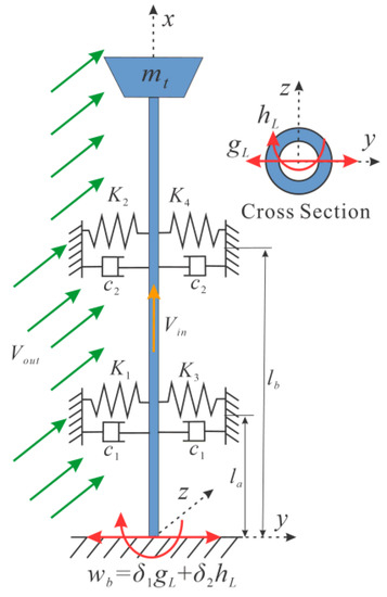 where is the equivalent lift coefficient used to describe the wake behavior, is the vortex shedding frequency, , and P are empirical parameters. Considering the effect of foundation excitation, Equation (17) for simulating vortex-induced lift can be further written as
