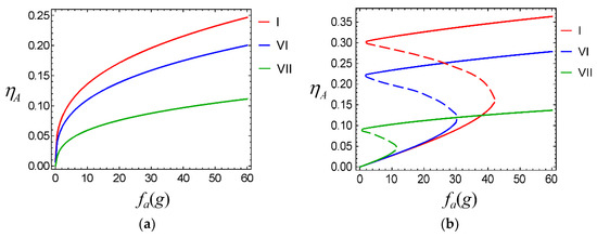 The relationship between the steady-state response amplitude of the VNA pipeline and the fundamental excitation amplitude is studied when the main resonance is fully tuned () and the main resonance is detuned (). Results are shown in Figure 8, where is the dimensionless amplitude at the top of the VNA system pipeline.