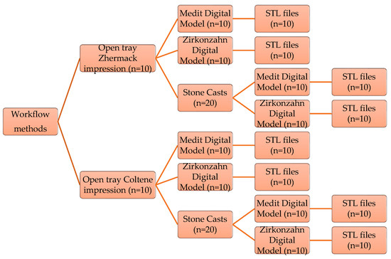 The digital impression can be acquired via two methods: (i) directly, using an intraoral scanner (IOS) for image acquisition and producing a 3D virtual model without using conventional impressions; and (ii) indirectly, using an extraoral scanner (EOS) to scan the stone model to create a 3D virtual model [5,6,7,8]. The STL (standard tessellation language) files corresponding to a three-dimensional dataset of the model are sent and stored electronically, improving efficiency [9].