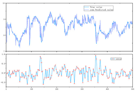 The prediction results obtained by the support vector machine (shown in Figure 7) show relatively large errors, although the overall trend is similar. On the other hand, the univariate LSTM in Figure 8 demonstrates relatively small errors and high stability in the early test results. Additionally, the multivariate LSTM in Figure 9 exhibits excellent performance in terms of both single-point predictions of true values and trend prediction. Therefore, the multivariate LSTM outperforms both the SVM and univariate LSTM models in terms of prediction performance.