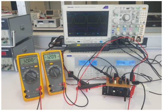 In order to verify the proposed configuration, an experimental prototype has been developed with a cost-effective commercial resonant controller, and its performance has been confirmed for different regulating conditions. The prototype provides a dual-output voltage of ±12 V from a single input in the range of 10–14 V, operating in step/up and step/down modes. The results obtained show that the designed converter is suitable for applications where SIDO voltage is required.