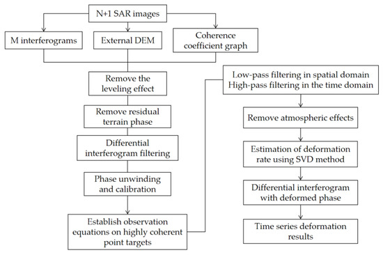 Technical flow of SBAS-InSAR.