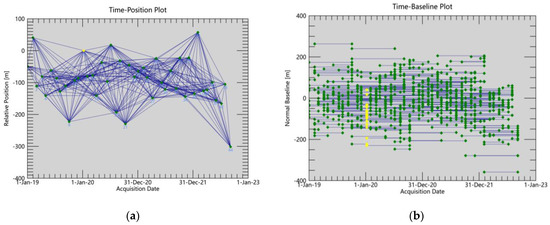 Spatial baseline distribution and temporal baseline distribution: (a) spatial baseline distribution; (b) temporal baseline distribution.