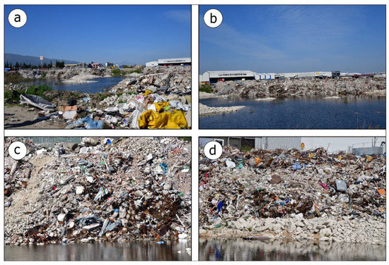 However, the Orontes River delta including the Samandağ dunes and their surrounding areas are under great pressure from human activities and more specifically from urbanization [96]. Due to population growth, agricultural land has shrunk, forests have been destroyed and pastures have decreased in size. Chemical fertilizers and agricultural pesticides were used extensively and a large number of agricultural machines were used to increase production. Other factors that have degraded the natural environment of the area are the extraction of sand from the coastal zone, the dumping of organic and inorganic wastes, and the construction of country houses, hotel facilities, and leisure and entertainment facilities including restaurants and a football stadium (Samandağ Deniz Stadyumu) (Figure 4) among others. These activities have converted a large part of the dunes into agricultural land and then into construction sites [96]. In addition to the above interventions, which have been highly detrimental to the coastal environment of Samandağ, another action that is characterized by a high potential to cause significant impact on both the ecosystem and the local population is the establishment of a debris disposal site in the coastal area of Samandağ, in particular immediately north of the stadium of the city (Figure 4).