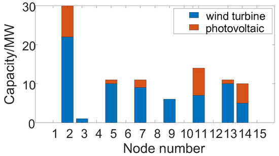 Based on this topology, this study investigated the rationality of WT/PV ES siting and sizing. Considering the actual demand, Method I and Method II, defined in the previous section, were used to plan the WT/PV ES. Then, comparisons with the original working conditions and analysis were carried out.