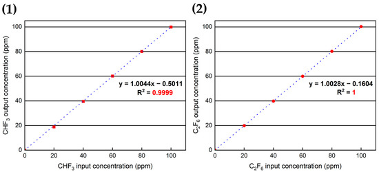- C(on,off): the measured concentration of FCs or N2O gas using the QMS at plasma (on/off state) (μmol/mol).