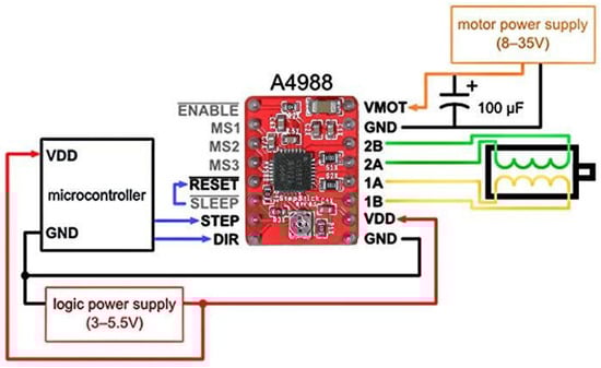 A4988 motor driver is a common drive module in CNC technology and mechatronics. It has the characteristics of an affordable price, easy control, small size, and rich subdivision. The wiring diagram of the stepper motor driver A4988 is shown in Figure 12.