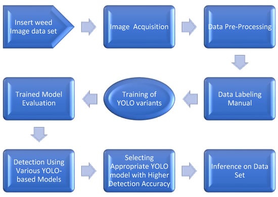 The experiment was carried out at university research farm Koont Chakwal during 2020–2021. The wheat seed was sown on 27 October 2020 with the help of a Rabi drill; a row-to-row distance of 23 cm was maintained under rainfed conditions. The temperature at sowing time was 24 °C/75.2 °F in October 2020–2021. The recommended dose of NPK was applied uniformly to all the fields at the time of sowing @ 52:46:25 kg/ha−1. The total plot size was 3 kanal. In the current study, a number of different YOLO (You Only Look Once) variants, i.e., YOLOv3-Tiny, YOLOv4-Tiny and different versions of YOLOv5, are employed to assess how well the model performed after various adjustments. Our objective was to assess the precision and effectiveness of several YOLO iterations in order to ascertain which version would be most suited to our particular application.