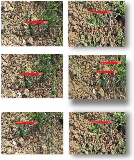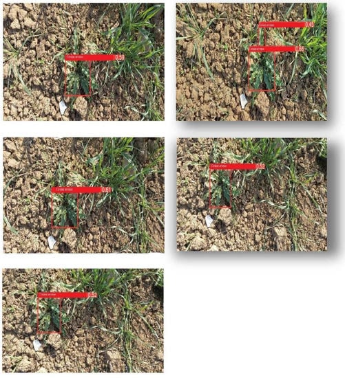 Real-time target identification relies on a number of variables, such as the amount and quality of pictures, the architecture of deep convolutional neural networks (DCNN), the hardware, and the memory storage, including GPUs []. Quantifying the phenotypic changes resulting from genetic or environmental differences using convolutional neural networks (CNNs) produced an 86.6% detection accuracy in recognizing wheat spikes. Using DL models, a 95.9 and 99.7% accuracy in identifying wheat spikes and spikelets, respectively, was achieved. Samseemoung et al. [] reported that DCNNs support agricultural applications. They classified weeds with an accuracy of more than 95% using DCNN models. Partel et al. [] described an extraordinary organization accuracy of 99% when using CNNs to distinguish between weeds and sugar beets.
