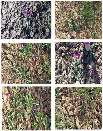 An aggregate of 6000 RGB ordinal pictures of weeds and wheat plants were reserved at the university research farm Koont Chakwal field, using a mobile camera (Samsung A31s) and Logitech C920 Pro HD webcam with a resolution of 1080 × 2400 (FHD+) (Full HD 1080p/30fps HD 720p/30fps) pixels. The images were taken from the field of PMAS Arid Agriculture University research farm Koont (Lat N 33.06, 59.7, N″ long 73.00, 40.6 E). Besides the other physical characteristics of wheat and weed plants modified throughout their life cycle, the dataset was split into three groups (Table 1). Some sample images of Cirsium arvense are shown in below Figure 1. The weed images obtained with an RGB camera were transferred to a computer to build deep learning models. A diagram of the weed images’ collection is shown in Figure 2.