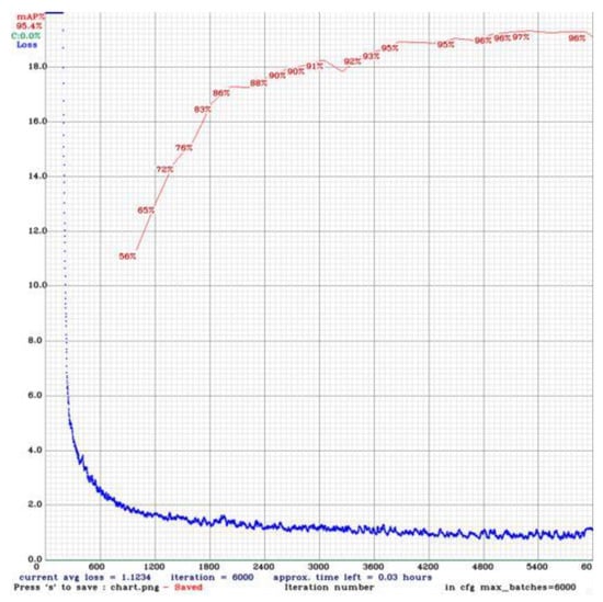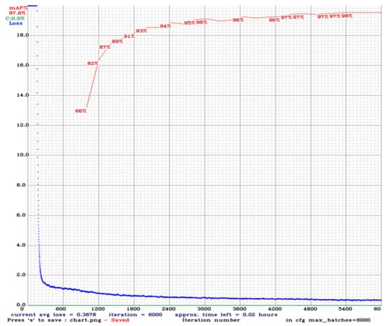 Prior to picture classification, all of the photos used for the model training were downsized (1280 × 720) in Irfan View (version 4.58) to obtain the best possible accuracy value. Cropping helps to remove the unnecessary details and helps the deep learning model to learn patterns that are relevant to the task at hand. Another reason for cropping images is that specific neural network models expect images of specific dimensions. YOLOv4 is example of such a network that expects images to be in 224 × 224 dimensions. The pictures were chosen to be 224 × 224 pixels in size, with a base learning rate of 0.001 and a decay learning ratio strategy. However, 0.95 was chosen as the value of momentum. The lessons were improved upon using a transfer learning strategy. Transfer learning involves retraining a model for new classes using the existing weights (a set of weights) from a model that has already been fully trained on a specific dataset, such as ImageNet []. Transfer learning is effective in many sensing applications, as confirmed by the study of Monteiro et al. []. Further steps during the DCNN network training showed that the lowest value was saved for the validation set later. The outcomes of all the saved models were then computed in the fashion of statistical metrics such as accuracy, precision, and recall with the test dataset. The training of all the detection models, including YOLOv3-tiny, YOLOv4-tiny, and variations of YOLOv5, was performed on the powerful discrete NVIDIA RTX 2070 GPU.