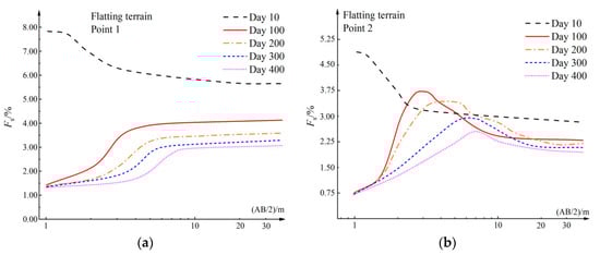 - In the symmetrical quadrupole sounding device, the placement of the bathymetric survey points at the center of the edges of the contaminated field projections during soundings provides a better estimation of the depths at the top and bottom of the heavily contaminated areas of the field based on the apparent amplitude frequency curves. Consistent with the mid-staircase profile, an increase in the migration depth of the contaminated field causes a significant decrease in the peak apparent amplitude frequency. However, it has no significant effect on the apparent resistivity valley.