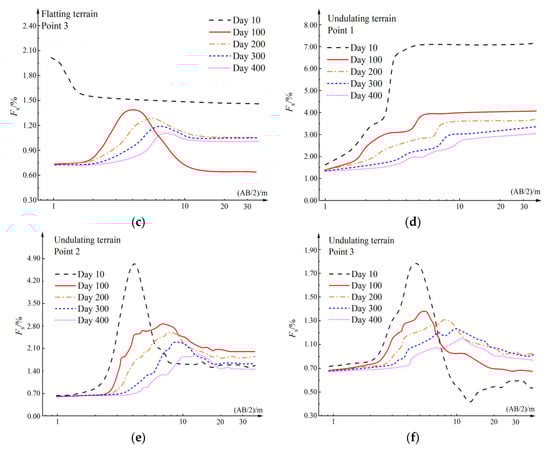 - The peaks of the apparent amplitude frequency curves corresponded well with the valleys of the apparent resistivity when the Intermediate Gradient detection device was used for detection on flat terrain. It was determined that the combination of the two curves gave a better picture of the orientation of the heavily contaminated area. When detecting undulating terrain, the valleys will lead to the phenomenon of “multiple peaks” of the apparent amplitude frequency curve in a heavily polluted area.