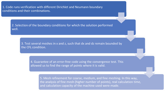 | Contour element method [27] | A numerical method for solving partial differential equations that involves discretizing only the boundary of the domain and approximating the solution at the border using interpolation functions. | It may be less accurate than the finite difference method in the solution in the domain’s interior since only the boundary is discretized. It may be more challenging to implement and tune due to the complexity of constructing the interpolation functions for the border. It may require a more significant amount of memory and computational time than the finite difference method to build and solve the system of equations. |