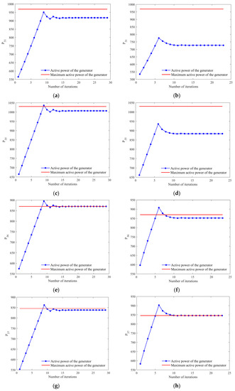 - Check whether some constraints have been violated. If there is any constraint violation, = − h and the generators of slack buses minus the corresponding allocation power, then go to step 9. Otherwise, go to step 5.