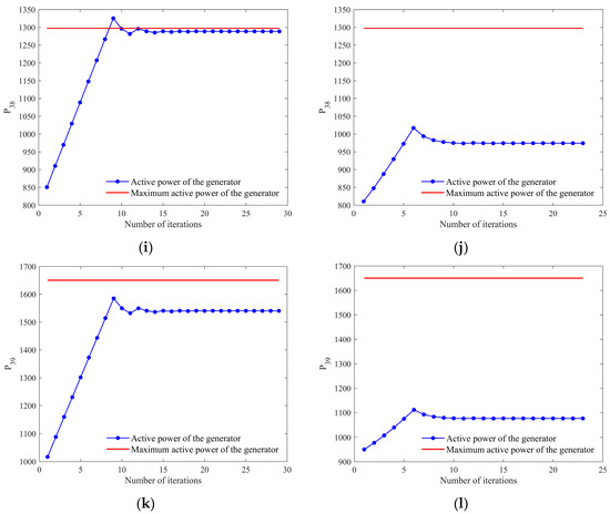 - The second power imbalance allocation: the power imbalance source arises from the growing load power. During the RPF calculation, loads need to be increased continuously to find the maximum load point, which can cause a significant power imbalance. This part of the power imbalance is relatively large and the load change is regular. Therefore, the generator power adjustment process is similar to the tertiary frequency regulation. The tertiary frequency regulation is essentially a problem of economic dispatch. Therefore, the allocation principle of power imbalance is selected according to the ratio of generator economy, which can be represented by the reciprocal of the cost of each generator.