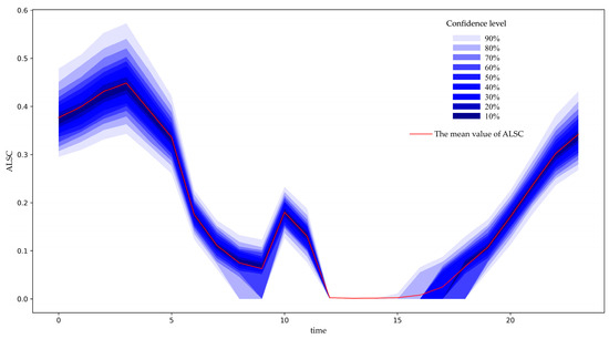 - Expectation of ALSC:where is the number of the Monte Carlo simulation and denotes the ALSC value of the ith Monte Carlo simulation.