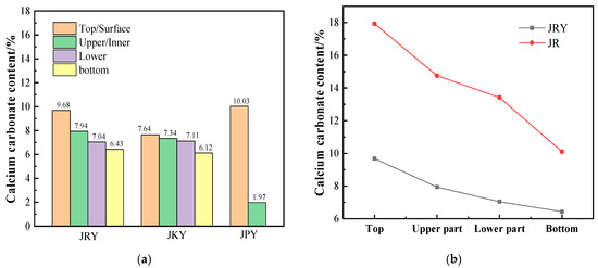 Calcium carbonate content: (a) JRY, JKY and JP; (b) JR and JRY.