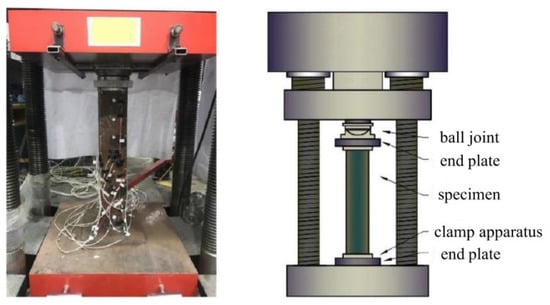 The experiment and the finite element analysis of X52Q marine high-strength seamless steel tube were carried out to guarantee the reliability and accuracy of the numerical simulation. Mechanical properties under axial compression were investigated. Table 4 shows the material properties of the specimens. Figure 5 shows the specimen after cutting processing. The electro-hydraulic servo pressure testing machine YAW-5000 was used to apply the axial compression. Constraint conditions were fixed and hinged at both ends of the specimen, which was achieved by a spherical hinge. Figure 6 shows the experimental setup.