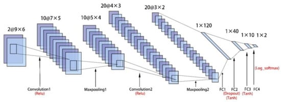 A CNN was developed to determine the corrosion damage to the specimen. Considering that already existing CNNs such as AlexNet have a complex structure and a large number of network layers, which consume a mass of calculation resources, we designed a new CNN. The network consisted of the input and output layers, two convolution layers, two max-pooling layers, and three FC layers. Figure 16 illustrates the structure of the network. The dimension of the input data was 2 9 6, which means the first six vibration displacements of nine reference points in UX and UY directions were considered. The detailed information on each layer is shown in Table 6. To avoid overfitting, the joint adaptation between the weakened neuron nodes was eliminated to improve the generalization ability of the network, and dropout (P = 0.3) was utilized to abandon parts of the neuron. The index of the max-value of the output layer represented the prediction result of the damaged or undamaged state of the specimen.