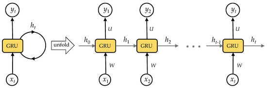 GRU networks can be considered as a simplified form of LSTM networks within the class of RNNs, as illustrated in Figure 6. They offer enhanced computational efficiency while preserving the effectiveness of LSTM networks.