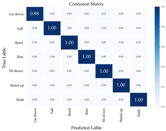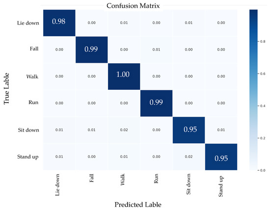 Confusion matrix of the proposed model on CSI-HAR dataset.