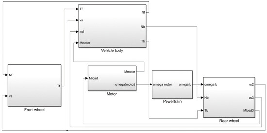 The inputs of the program and its output functions are listed in the Nomenclature. The electromagnetic and dynamic characteristics of the applied electric motor (, , , , , , , , , ) were measured previously [8,9], and the output functions (, , ) of the motor simulation program module were validated by test measurements [9]. Some of the other vehicle parameters (, , , , , , , , , , ) were also measured [3], while the remaining ones (, ) were approximated on the basis of literature data.