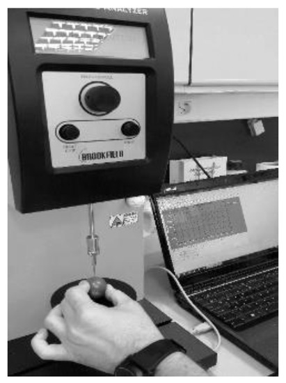 To determine the rupture force and deformation energy of cherry tomatoes in compressive tests, a biological material test device was utilized (Figure 1).