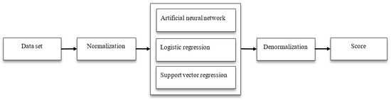 When the figure is analyzed, the first stage is the creation and preprocessing of the data set. In the second stage, normalization operations are performed. It is the method applied to reduce the data set to a certain value range and thus increase the success rate. In the third stage, the machine learning methods used in the study are seen. At this stage, there are three methods: artificial neural networks, logistic regression, and support vector regression. The fourth stage is the denormalization stage, where the actual values of the normalized values are learned. In the last stage, success and error analyses of machine learning models are performed.