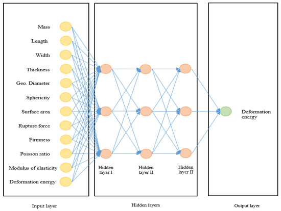 In the study, three different methods, namely logistic regression, artificial neural networks, and decision trees, were picked to estimate the deformation energy of cherry tomatoes. The working system is shown in Figure 4.