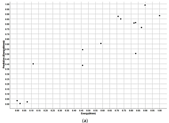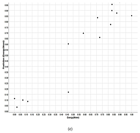 An R2 of 1 indicates that the independent variables are strong in explaining the dependent variable and provide a linear curve. R2 was 96.8% for artificial neural networks, 91.1% for logistic regression, and 81.3% for decision tree regression. These results show that the ideal values are met. Mean squared error (MSE) is a statistical metric that evaluates the error values of machine learning methods and shows that values close to zero have fewer errors. An MSE value close to zero indicates that the error is low. It was regarded that the MSE was 0.005 for artificial neural networks, 0.011 for logistic regression, and 0.013 for decision tree regression. The error rate of the models was found to be low and acceptable. The MAE metric gives the magnitude of the error as a quantity. In the study, it was seen that it was 0.051 for artificial neural networks, 0.091 for logistic regression, and 0.097 for decision tree regression. It is accepted that the MAE value is very good in all three models. When evaluated according to error and success values, it is seen that the most successful and least error models are artificial neural networks, logistic regression, and decision tree regression, respectively. Figure 6 shows the scatter plots of the models.