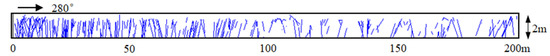 The data of this study were obtained from the random discontinuity of the adit PD274 survey. The adit of PD274 is located at the elevation of 1450 m on the right abutment of Maji Hydropower Station on Nujiang River (Figure 7). The direction of the adit is about 280°, roughly perpendicular to the direction of the river. The adit is about 200 m long and about 2 m high and wide. The exposed lithology in the adit is mainly mixed granite and mixed gneiss, with a small amount of white granite dyke development. A total of 294 random discontinuities were measured in this adit by using the window survey sampling method. Figure 8 is a two-dimensional trace diagram of adit PD274. The equal area upper hemisphere pole diagram of the random discontinuity surface of the adit has been drawn, as shown in Figure 9. It can be seen from Figure 8 that the discontinuities of PD274 can be roughly divided into four groups, two groups of steep dip angles and two groups of gentle dip angles.
