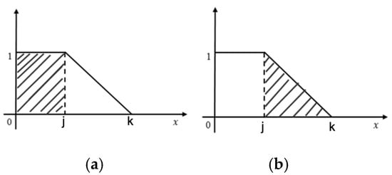 Figure 5 illustrates the representation of the L-function fuzzy number. On the other hand, Figure 6a,b depict the left and right regions respectively during the process of defuzzification.