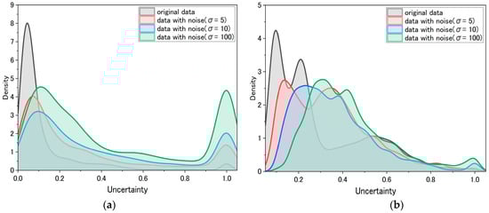 The uncertainty distribution of ADAS13 and diagnosis after adding noise. (a) ADAS-Cog13. (b) Diagnosis.