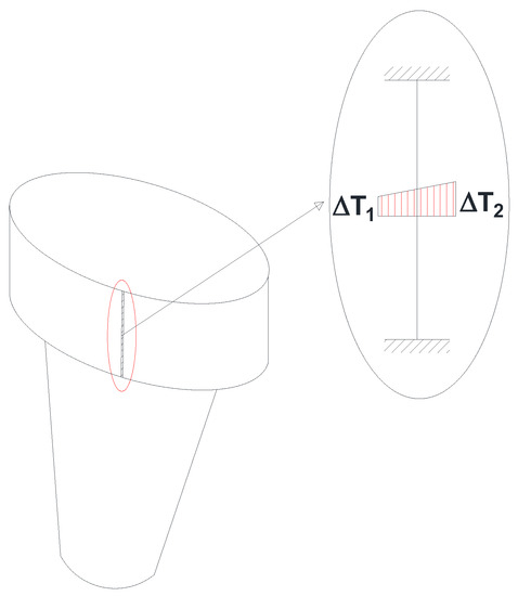 To evaluate the materials’ performance concerning thermal distortion, a simple case was considered, i.e., an element of the structure with a non-uniform power deposition. This was modelled as a fixed-ended beam subject to a non-uniform thermal distortion with a rectangular section as shown in Figure 3.