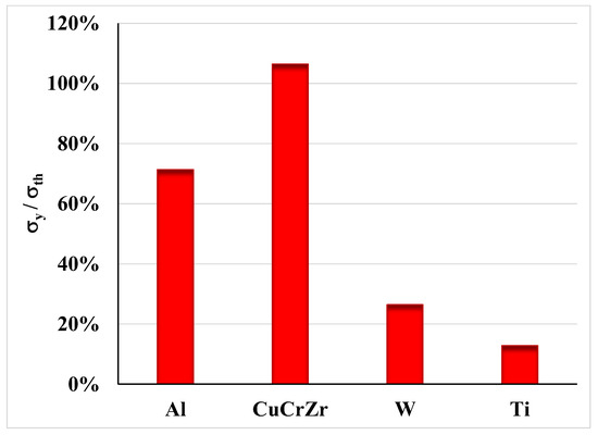 As shown in Figure 4, the stress due to the thermal effect for CuCrZr exceeds its yield strength being the normalised strength equal to 106%.