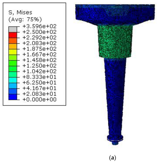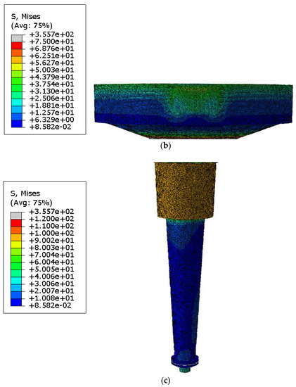 In both configurations presented, the stress field did not exceed the strength yield limit of the material (Figure 13). It is important to underline that the current comparison has the only scope to provide a qualitative definition of the von Mises stress in both configurations.