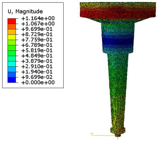 Displacement distribution map in mm.