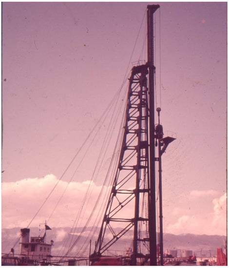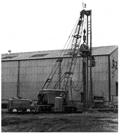 Sand compaction pile machine in the 1950s (courtesy of the Fudo Tetra Corporation).