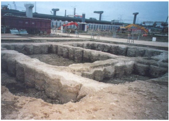 - Saegusa, H.; Asada, H.; Taguchi, H.; Fukawa, H.; Hirota, S. Case study on application of deep mixing method in Kinjo area of Nagoya port. In Proceedings of the DFI Deep Mixing Conference 2021, Online, 1–17 June 2021; pp. 225–232. [Google Scholar]