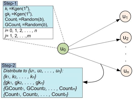The user keys as well as the relevant extra numbers are transmitted to “”, respectively, using safe ways. Additionally, the root key and the extra value are dispersed among “.” The keys “” and the accompanying supplementary values “” are distributed among SXs in accordance with the users’ involvement preferences in DR projects. These preferences are reflected in the GCount values.