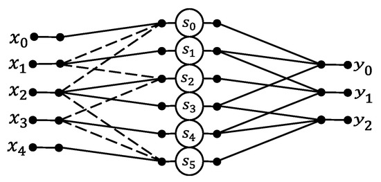 At the algorithmic level, methods for reducing the above parameters usually focus on minimising the number of arithmetic operations, especially multiplications. In this regard, developing algorithms for performing the main filtering operations, characterised by minimal multiplicative complexity, is an urgent task. So, we again emphasise that convolution calculation is an essential mathematical macro operation in DNNs. And usually (though not always) it is computed using Winograd’s minimum filtering algorithm [1,12,14,18,20,21,22,40,41,42]. However, since, as already noted [43], this algorithm can only calculate two adjacent dot products, it is not suitable for all possible situations that can arise in neural networks. For example, Winograd’s minimum filtering algorithm is redundant for and tile size (5 × 5) or for and tile size (9 × 9). Many other examples could be given. In this article, we present algorithmic solutions for FIR filters with short-length impulse responses, which can be more efficient in some cases than Winograd’s minimal filtering algorithm.