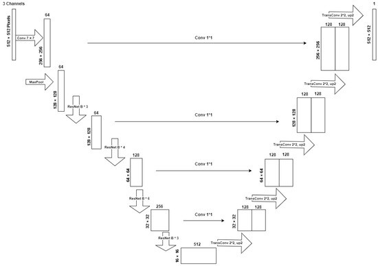 U-Net architecture diagram with ResNet-34 as the backbone model [36].