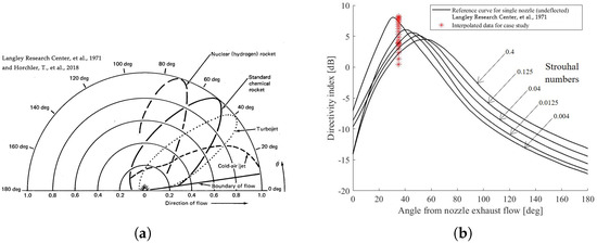 Figure 5b shows the normalized reference curve for the single-nozzle (undeflected) standard chemical rocket as a function of the angle and the Strouhal number, and the directivity indices interpolated for the case study.
