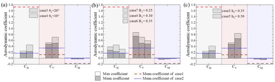 Effect of WGB parameters on HST aerodynamic coefficients (windward): (a) angle of main deflector plate θ1; (b) width of WGB root B1; (c) size of upper deflector angle h1.