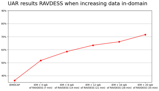 Accuracy in terms of UAR for RAVDESS database with a progressive increment of audio in-domain in the training set.