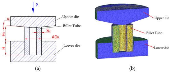 Geometric models of the punch, die, and billet tube are meticulously constructed to meet the precise shape and size requirements of the product, as depicted in Figure 2a.