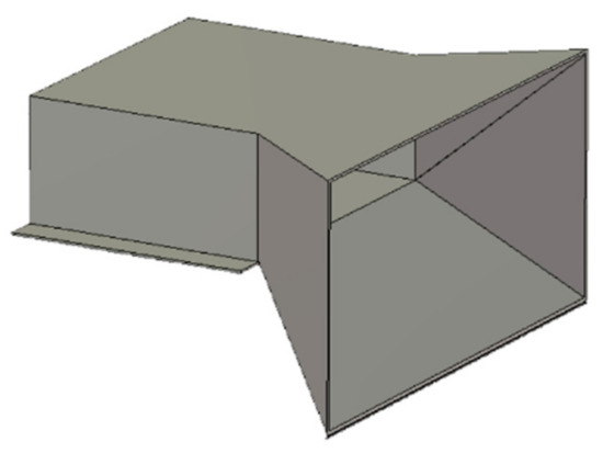 According to the classification, horn antennas belong to the aperture class antennas. They have emitting elements in the form of planar aperture in which angular distribution of the microwave field is achieved. Among advantages of these antennas are a relatively simple and reliable design, convenience of connecting to waveguide transmission lines, rather low energy loss and wide bandwidth [29,30]. Horn antennas are applied in a broad frequency interval ranging from decimeter to millimeter waves. Typical horn antenna design structure is a smooth transition interface between the waveguide’s open end and the radiating surface (aperture). The latter is of large size in order to enhance its radiation directionality and, therefore, to attain better matching between the radiator and the feeder transmission line. The authors used a combination of H-sectorial and pyramidal horns (see Figure 6a,b). The upper plane of the horn has H-sectorial form while the lower one is made in the form of a pyramidal horn (Figure 6c).