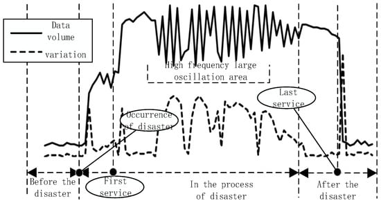 Mobile emergency big data, which is mainly based on mobile emergency facility information and its related scheduling, decision-making, process, and status, is in a “quiet state” when there is no emergency response service, and the data volume tends to be calm and fluctuates little. However, there is a surge in the occurrence of emergency events and the first service, especially in the mid-event stage when the frequency of updating, integration, and correction of data resources is greatly accelerated due to frequent mobile emergency decision-making and dispatching, thus showing a significant shock and rapid changes in data volume. And, it may be subject to greater changes brought by the entry of external mobile emergency facilities until the incident is effectively handled and enters the post-incident phase before the data volume stabilizes and rapidly decreases to daily scale data volume after the last service. Usually, the reduction of mobile emergency big data at the moment of the last service is the sum of the increase at the moment of the emergency and the moment of the first service, while only a specific area shows high frequency and large shocks in the mid-event phase.